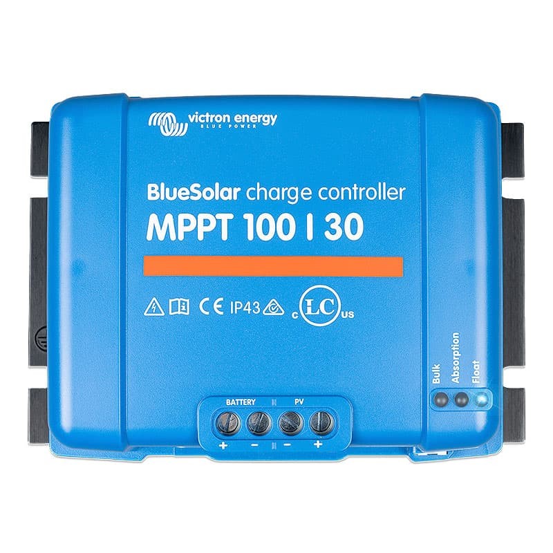 El regulador de carga solar Victron BlueSolar MPPT 100/30 es muy eficiente y cuenta con protección contra el sobrecalentamiento.