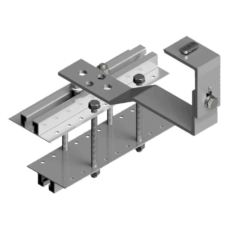 El kit abrazadera de vigas para fijación de soportes en tejados con vigas de madera o cemento es muy resistente, fiable, económico y fácil de instalar.