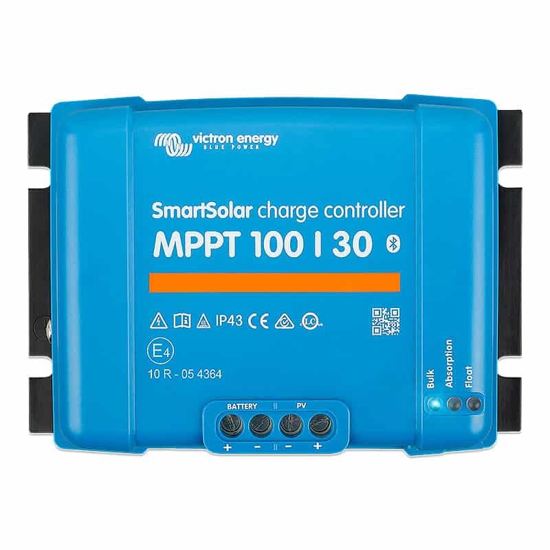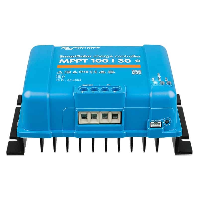 The Victron SmartSolar MPPT 100/30 solar charge controller is efficient, compact, and features overheating protection.