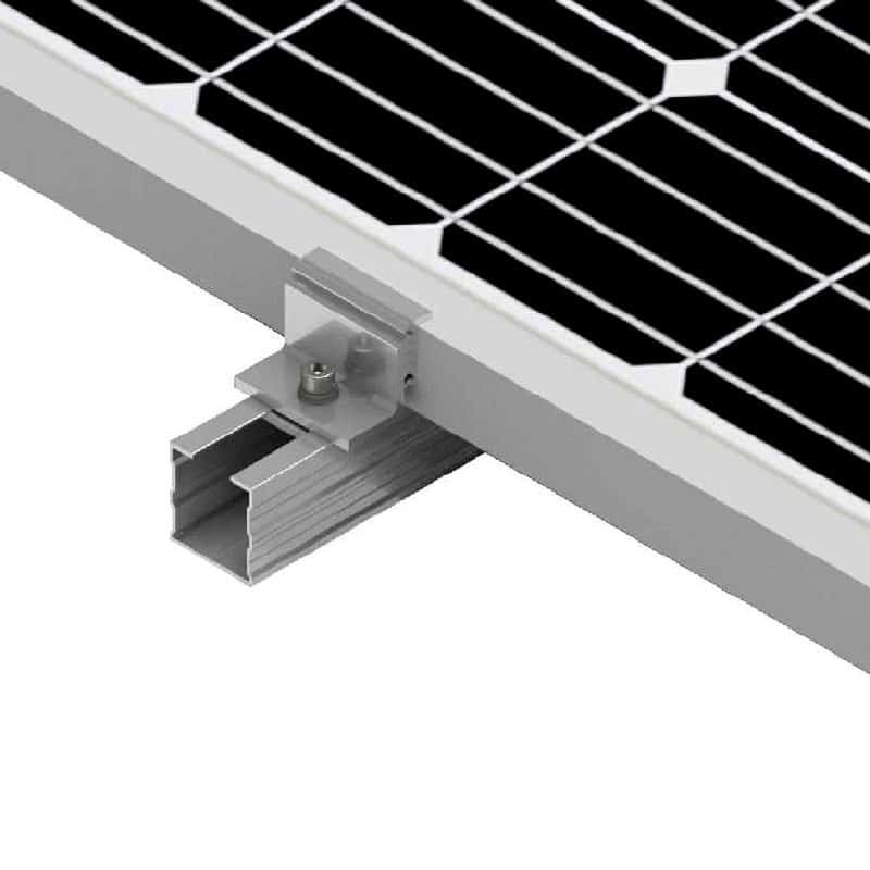 The adjustable side fastener for mounting on SG3 sections in solar panels is a high-strength aluminum accessory, ensuring durability and security.