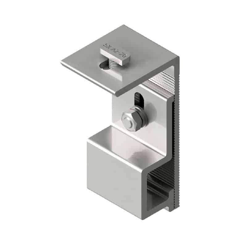 The zinc coplanar roof fastener is ideal for mounting on metal roof supports, providing high strength and durability.
