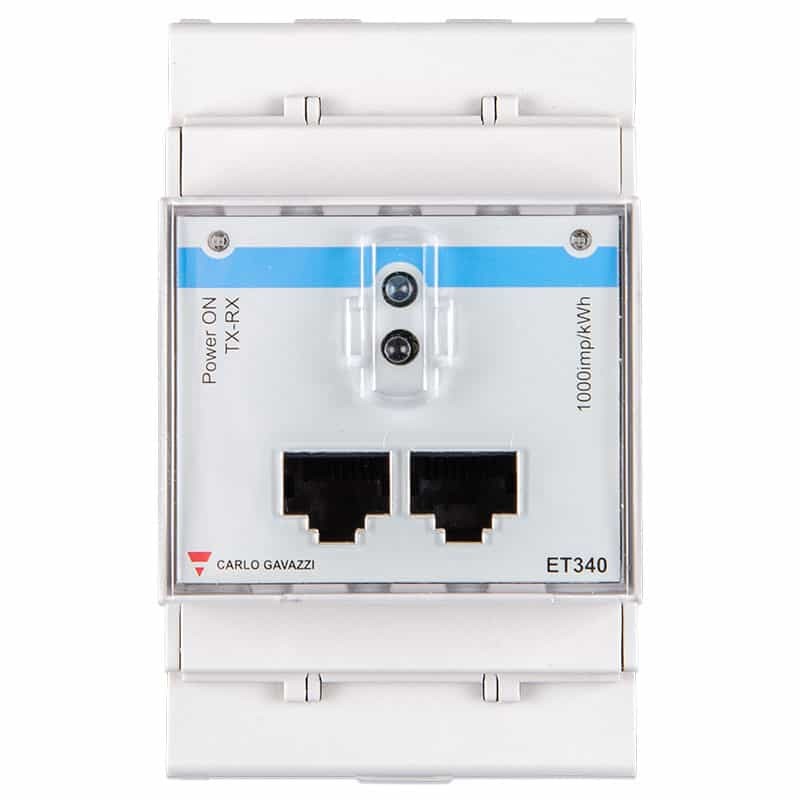 Os medidores/contadores de energia ET340 são utilizados em sistemas de armazenamento de energia trifásicos, com uma capacidade máxima de 65A.