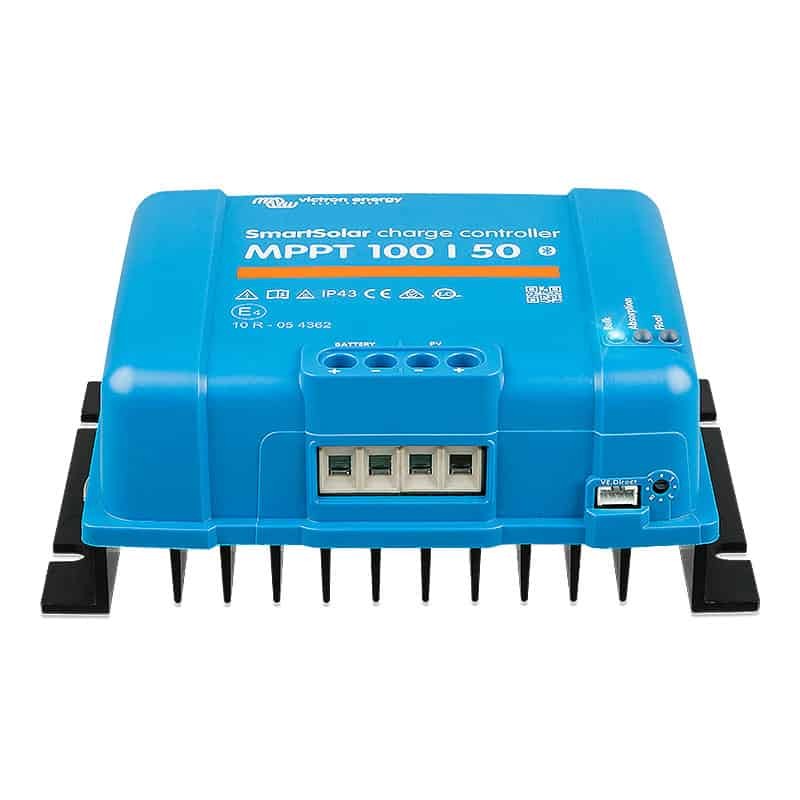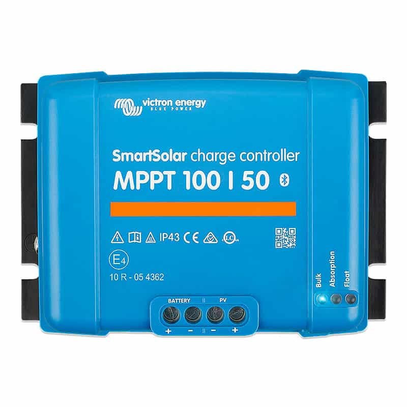 O controlador de carga solar Victron SmartSolar MPPT 100/50 é muito eficiente e possui comunicação Bluetooth integrada.